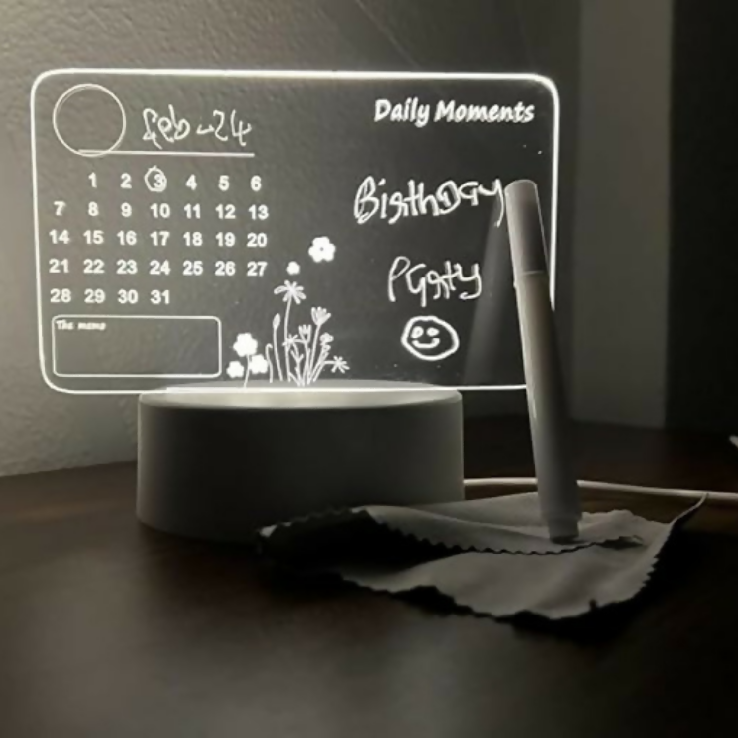LED acrylic writing board, calendar LED lamp, message board light, USB night lamp, writeable lamp with pen, acrylic note light, creative desk light, reusable writing pad lamp, glowing calendar board, LED reminder lamp, home office decor, student desk accessory, valentine gift for boyfriend girlfriend, planner light board, modern LED message frame
